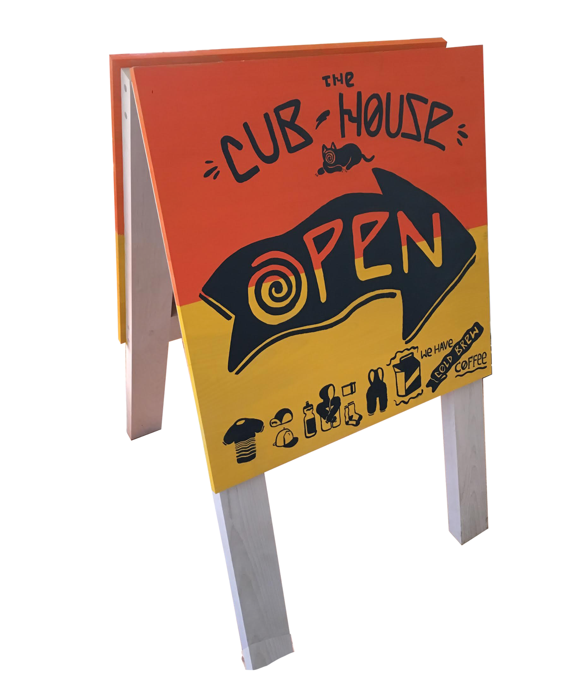 Logo design, font design, and Building painting for bicycle clothing pop-up store "The Cub House".